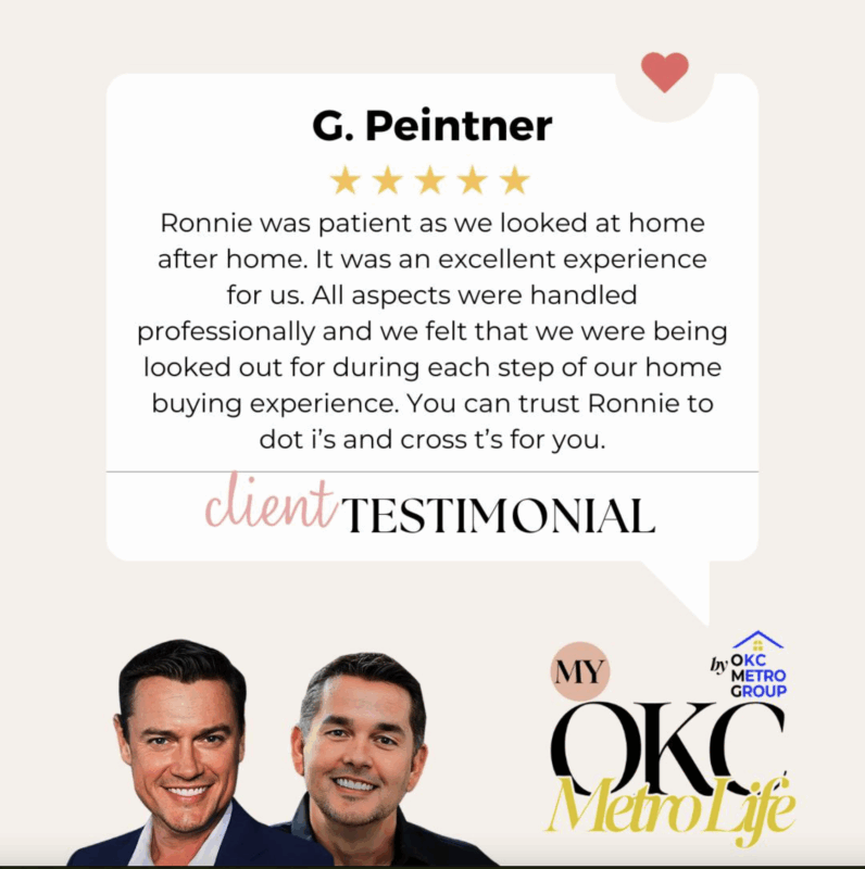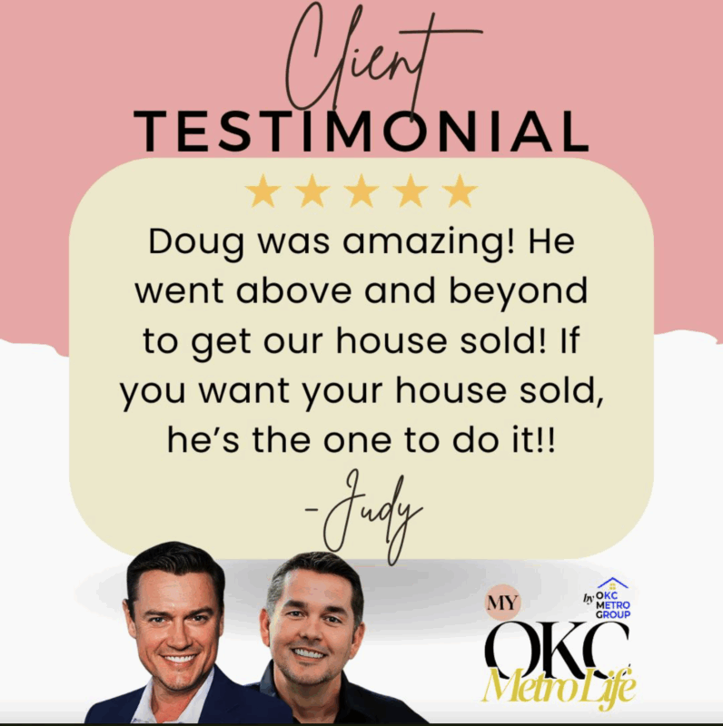 🌟 OKC Metro Group Client Testimonial 🗣️ "Doug was amazing! He went above and beyond to get our house sold! If you want your house sold, he’s the one to do it!!" – Judy Looking to make a move in the OKC Metro? 🏡 Give us a call today at (405) 348-6700! ... Continue Reading » about OKC Metro Group Client Testimonial