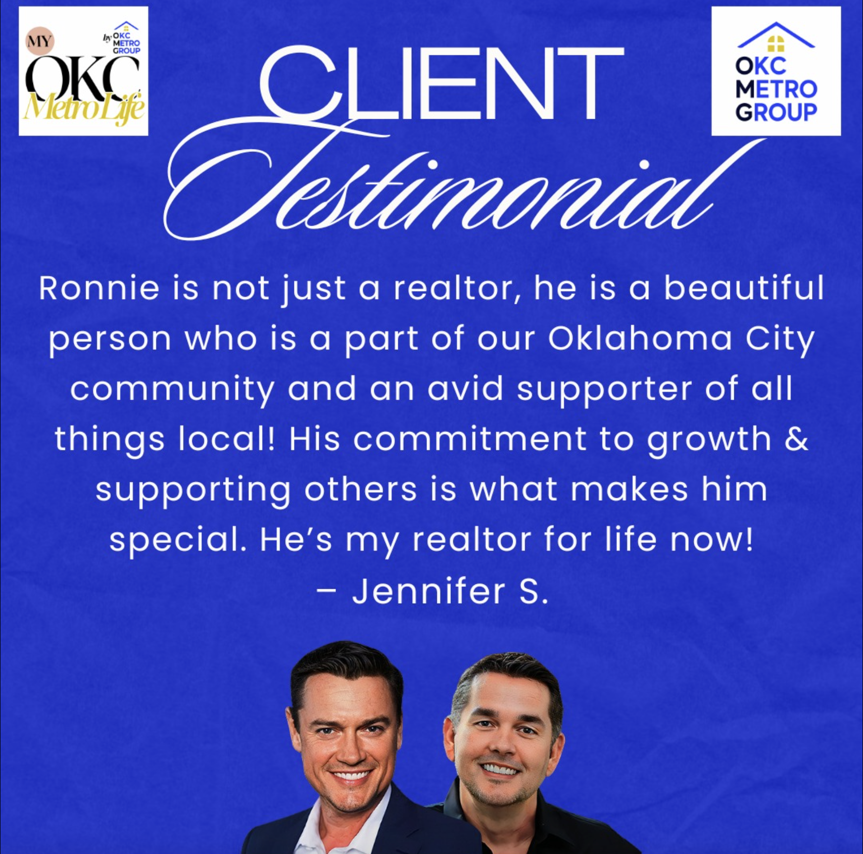 “Ronnie is not just a realtor he is a beautiful person who is a part of our Oklahoma City community and an avid supporter of all things local! His commitment to growth & supporting others is what makes him special. He’s my realtor for life now!” - Jennifer S. Looking to make a move in the OKC ... Continue Reading » about Client Testimonial